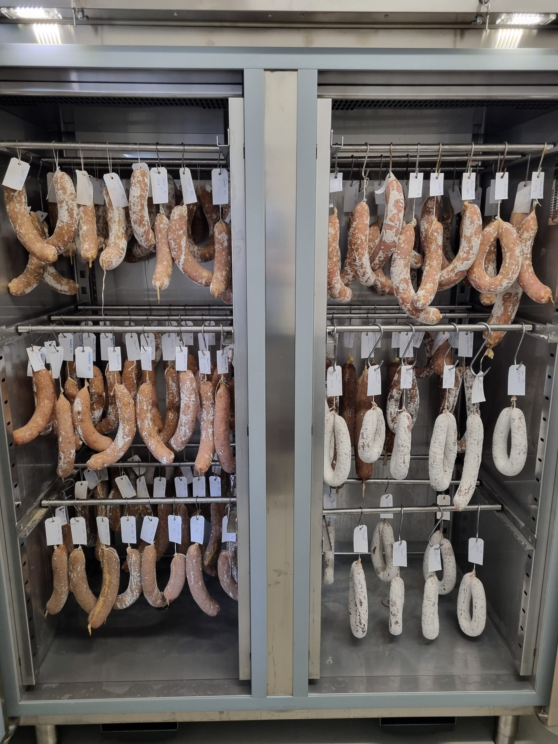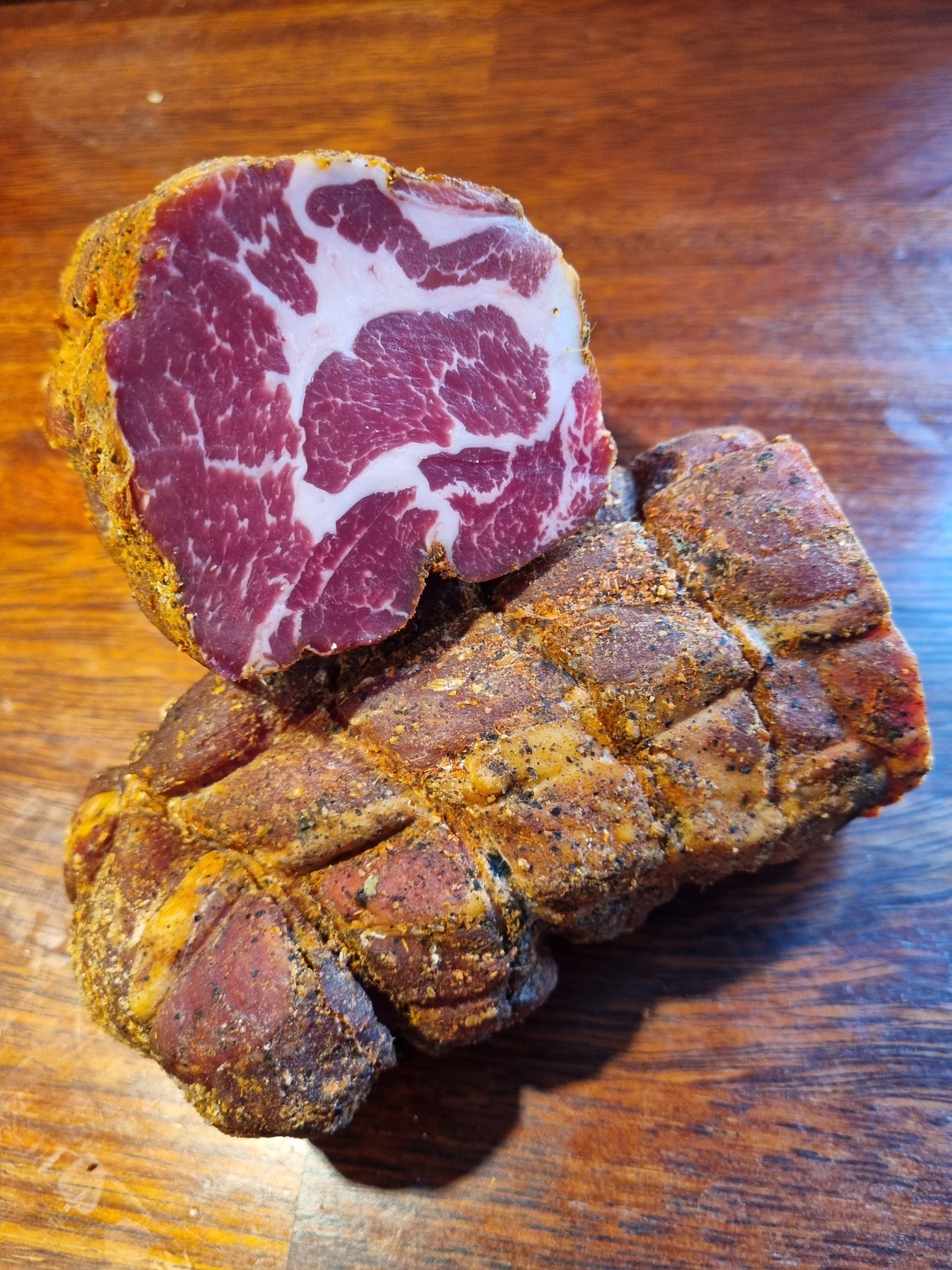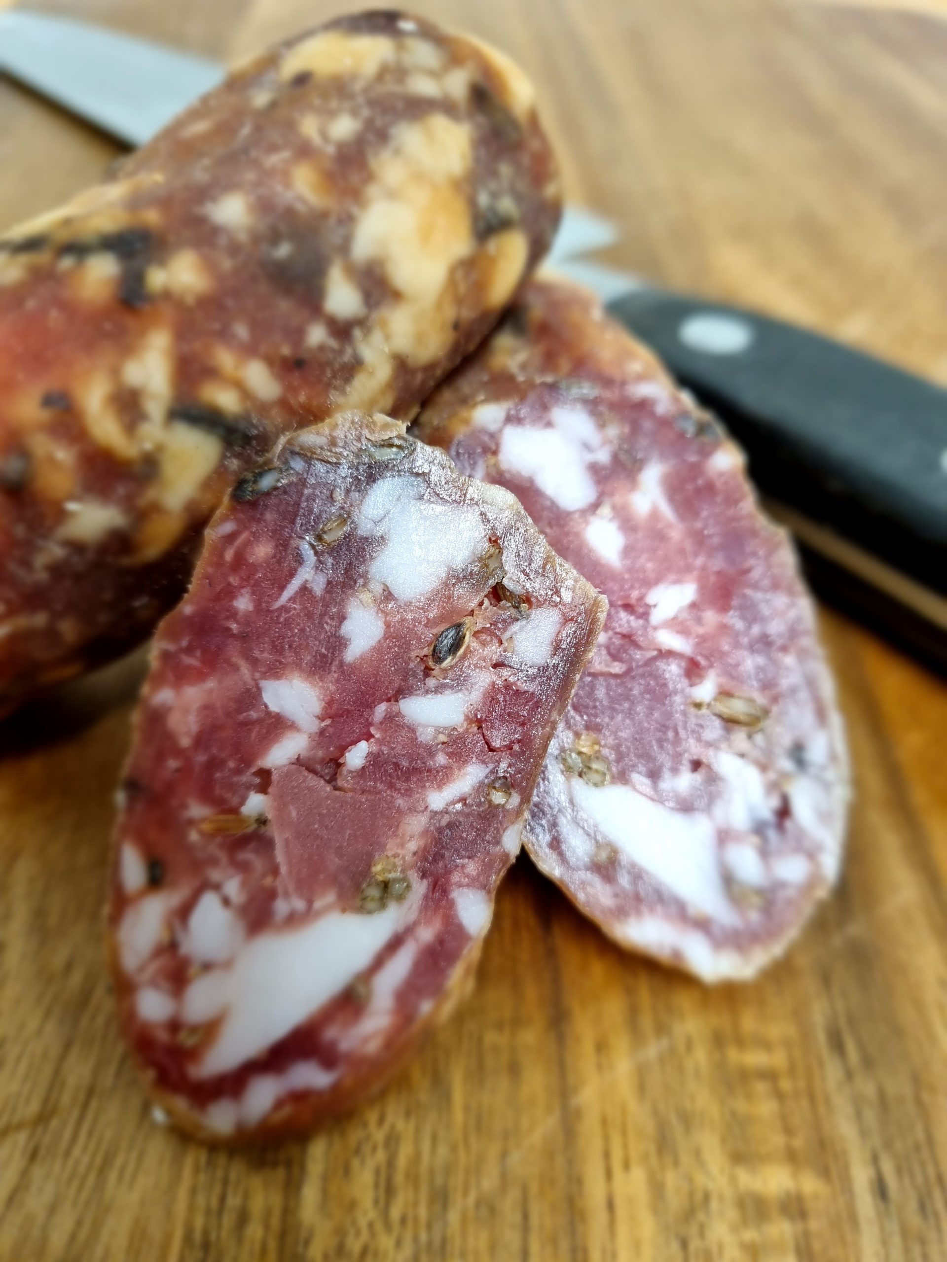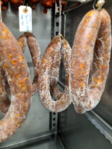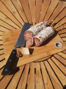 Vores pølser, skinker og andre charcuteri produkter er båret på stolte håndværkstraditioner, og indeholder ingen tilsætningsstoffer. I vores produktion er tiden vigtig. Vi fremskynder ikke nogen processer for at få varer hurtigere på hylden. Smagen, den dybe umami er målet for enhver produktion. Det opnås kun ved at give kødet den tid det kræver. Og vi går ikke kompromis.